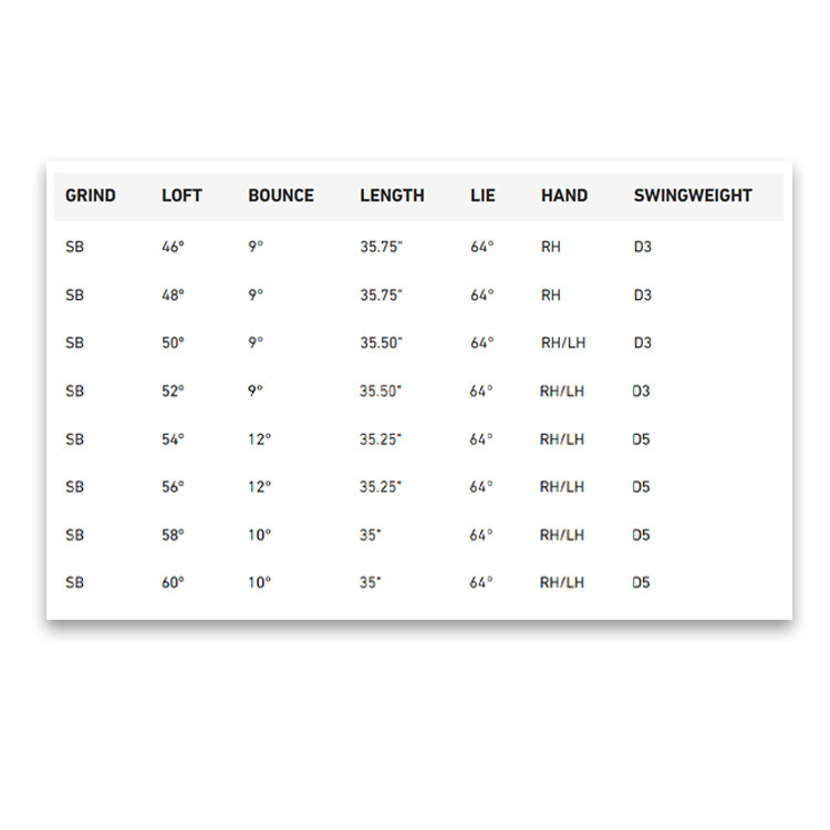 Tour-Inspired Grinds: Features six precision-milled sole designs developed with input from the game’s best players, offering optimal turf interaction for any swing type or course condition.